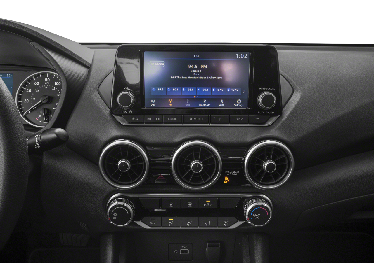 - Radio: AM/FM w/RDS/MP3/Aux-In -inc: 6 speakers plus 2 tweeters in A-pillar, 8" color display w/multi-touch control, streaming audio via Bluetooth®, Bluetooth® hands-free phone system, hands-free text messaging assistant, Siri eyes free, Google Assistant voice recognition w/Apple CarPlay and Android Auto, NissanConnect, (1) front USB connection port (type A), (1) additional front USB (type C) and (1) charge-only USB (type A) center console and SiriusXM radio w/advanced audio features